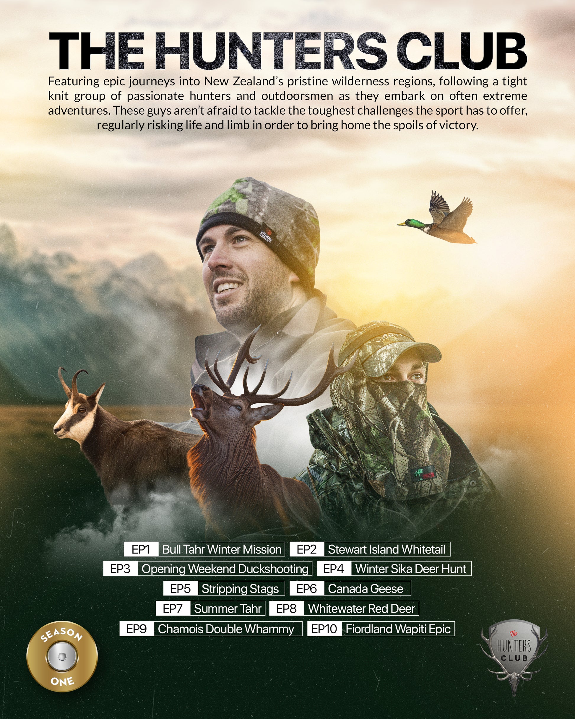 Featuring hunts for Red Stags, Sika Deer, Bull Tahr, Sambar, Whitetail, Bull Elk, Boars, Waterfowl, and so much more. With a unique mix of drama, action & camaraderie, backed up with some of the most jaw-dropping moments ever caught on camera, you won’t find another show like The Hunters Club.